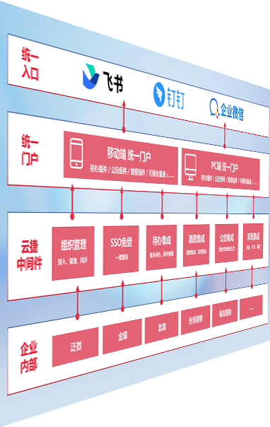 对协作平台提供支持服务,,,支持企业应用与协作平台对接,,包含组织同步、、、、消息集成、、、、待办集成等。。支持目前主流的协作平台:钉钉、、、、企微和飞书。。。。